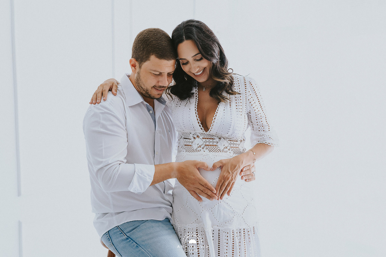 Por isso, é muito importante que você converse com a fotógrafa com antecedência sobre as condições da sua gestação para que possam agendar uma sessão segura para todos, principalmente para o bebê.